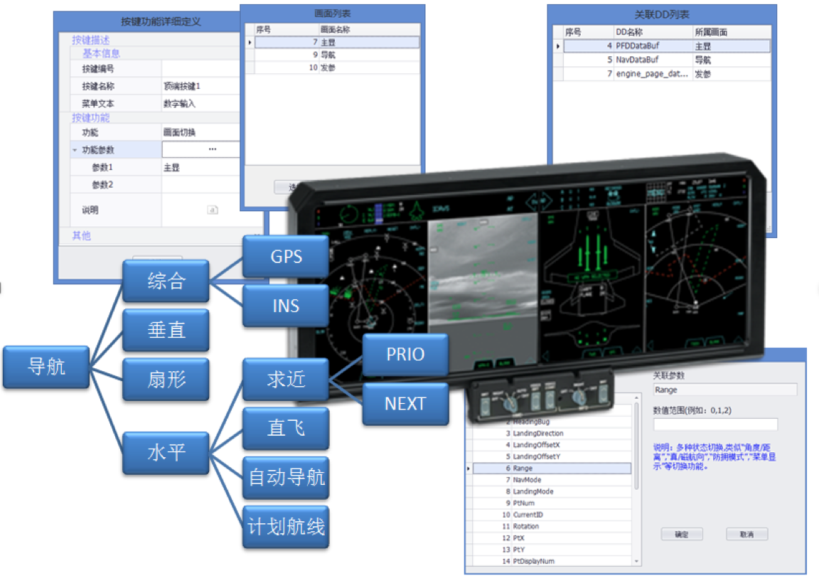 HMI大屏顯示設計工具采用成熟的設計方法,通過功能定義配置、狀態切換管理和參數鏈接方式,快速的連接顯控邏輯仿真和畫面仿真。提供一種模式化的框架方法,用于HMI大屏顯示組件式設計,支持快速仿真驗證,加快設計迭代過程。